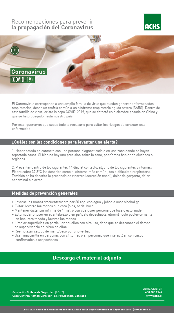 Y porque queremos hacer de Chile el país que mejor cuida a los trabajadores y sus familias, queremos que sepas todo lo necesario para evitar los riesgos de contraer esta enfermedad. Infórmate y descarga el material con medidas preventivas para ti y tus trabajadores aquí: